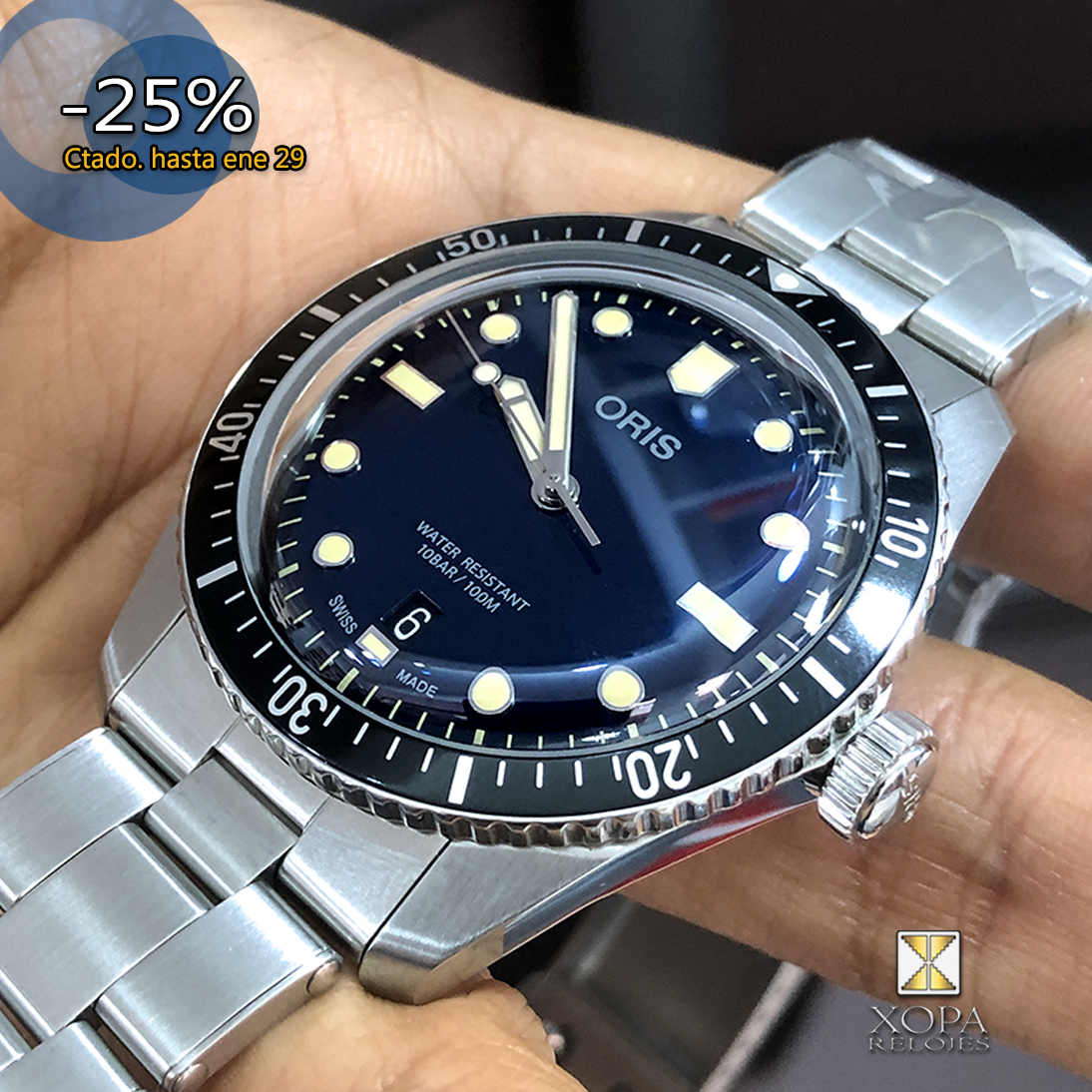 Distintivo • Cristal de zafiro redondeado en bordes para darle un toque vintage, Bisel direccional, Swiss made.